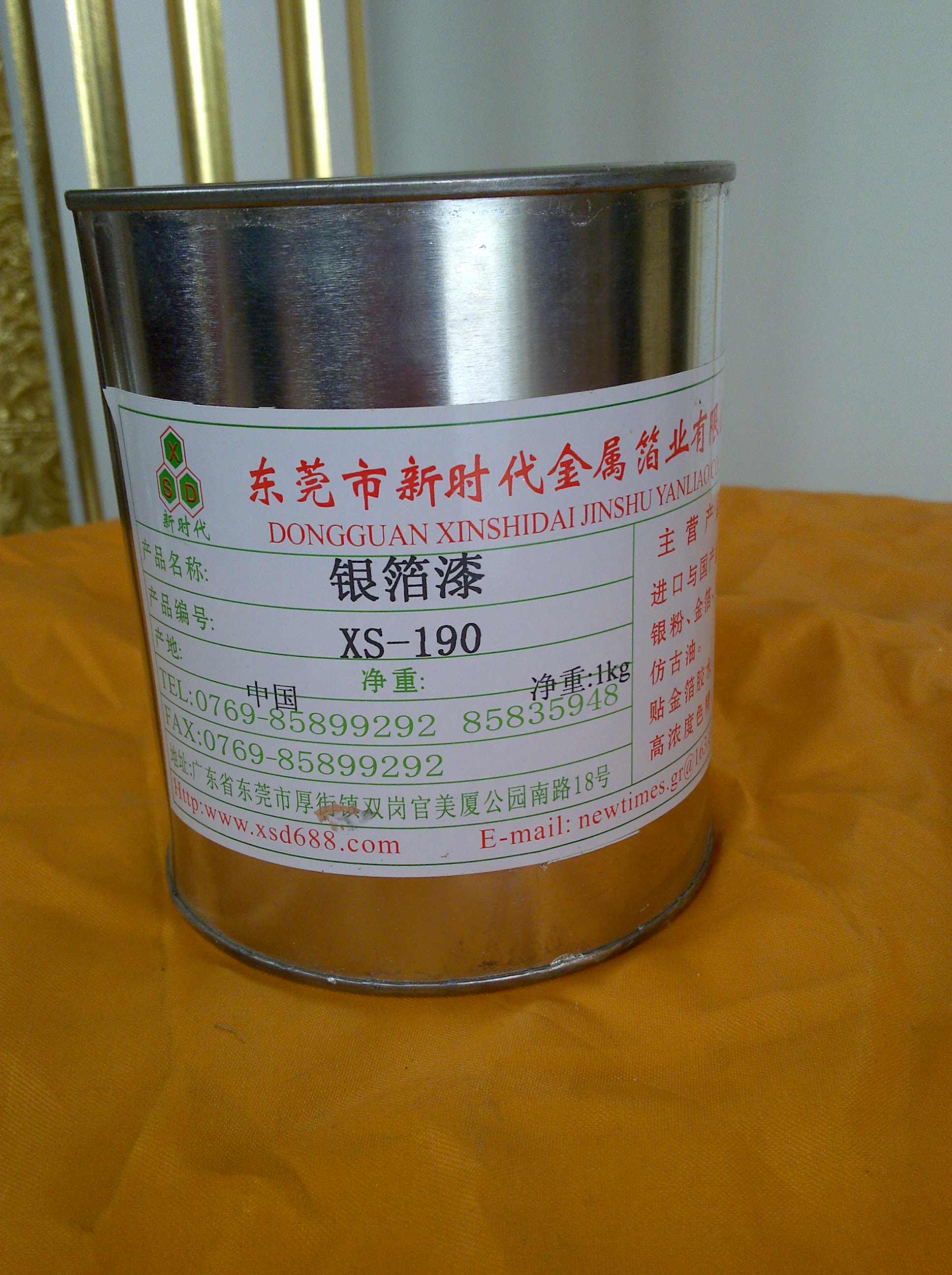 莞市新时代金属箔业有限公司于2001年正式成立,公司集设计制造、生产加工、施工管理、箔类生产及贸易为一体的专业加工生产制造型企业。经过多年艰辛创业与磨练,麾下聚集了一批经验丰富,技艺高超的设计及制作贴金艺师,并带领日臻成熟了的专业施工队伍,成功完成了一项又一项规模较大,工艺要求高,社会影响广泛的装饰贴金工程和大批量的贴金家具工艺礼品等项目。 新时代金属箔业有限公司专业销售美国、德国、英国、日本、意大利、台湾与国内品牌企业公司的金银系列:24K纯金箔、纯银箔、台湾仿真金箔、仿金箔、仿银箔、仿古金箔、古铜金箔、幻彩金箔、五彩金箔、碎金箔、碎银箔、造旧水、仿古油、水溶性贴箔胶、油性专用贴箔胶、金银箔专用保护金油。240目一2000目国产与进口青光金粉、红光金粉、闪光黄金粉、古铜金粉、银粉、金漆、24K金箔漆、金箔粉、闪光银、细白银、电度银、台湾高浓度色精。 同时本公司全程包工包料承接家具 、工艺品、灯饰、酒店、宾馆、别墅装饰工程贴金箔、银箔与涂画金银粉业务。