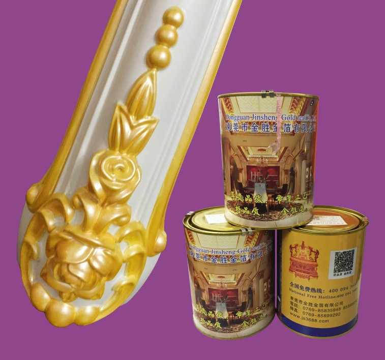 莞市新时代金属箔业有限公司/金胜金箔公司, 性质;油性 金胜金箔漆是由高分子乳液、纳米金属材料、 纳米助剂等优质原材料采用高科技生产技术合成的新产品。 金胜金箔漆类的原材料中的片状结构具有很高的折光率, 使金箔漆具有独特的金属光泽,可以和黄金的效果相媲美。 金箔漆不是通过光的吸收产生彩的,而是通过光的干涉产生彩的, 所以金箔漆的化学稳定性、 耐紫外光、潮湿和热风等抗风化作用都超过传统的涂料。 金胜金箔漆不仅可用于外墙装修和高档酒店及家庭的房间装饰,家具,还可以用于雕刻、 陶瓷等工艺品的仿金罩面,高贵典雅,施工方便,可用于毛笔描与喷涂,装饰性极强。 用于代替传统的金属装饰和金箔装饰,更具有物美价廉,施工简便快捷,易于翻新等优点 东莞市新时代金属箔业有限公司于2001年正式成立,公司集设计制造、生产加工、施工管理、箔类生产及贸易为一体的专业加工生产制造型企业。经过多年艰辛创业与磨练,麾下聚集了一批经验丰富,技艺高超的设计及制作贴金艺师,并带领日臻成熟了的专业施工队伍,成功完成了一项又一项规模较大,工艺要求高,社会影响广泛的装饰贴金工程和大批量的贴金家具工艺礼品等项目。新时代金属箔业有限公司专业销售美国、德国、英国、日本、意大利、台湾与国内品牌企业公司的金银系列:24K纯金箔、纯银箔、台湾仿真金箔、仿金箔、仿银箔、仿古金箔、古铜金箔、幻彩金箔、五彩金箔、碎金箔、碎银箔、造旧水、仿古油、水溶性贴箔胶、油性专用贴箔胶、金银箔专用保护金油。240目一2000目国产与进口青光金粉、红光金粉、闪光黄金粉、古铜金粉、镜面银箔漆、香槟银箔漆、高亮镀金箔漆、香槟金箔漆、银粉、金漆、24K金箔漆、金箔粉、闪光银、细白银、电度银、台湾高浓度色精。同时本公司全程包工包料承接家具 、工艺品、灯饰、酒店、宾馆、别墅装饰工程贴金箔、银箔与涂画金银粉业务。